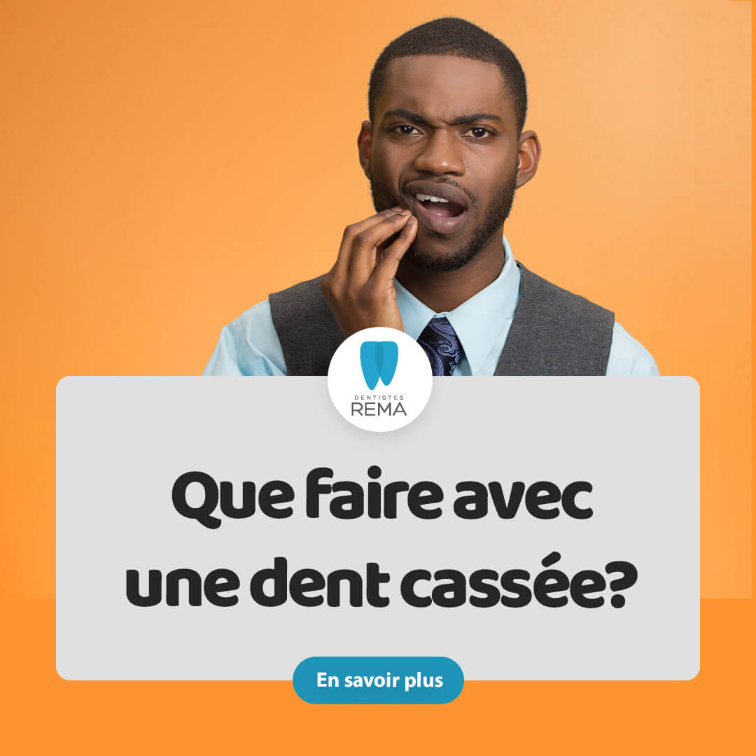Une dent cassée nécessite un examen et un traitement immédiats. Il s’agit d’une urgence dentaire, mais si vous ne pouvez pas consulter votre dentiste immédiatement, voici quelques mesures à prendre pour vous soulager :