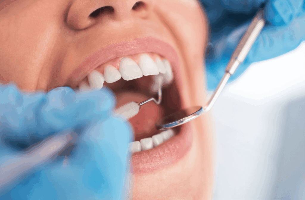 - Élimination du biofilm en profondeur (sous la gencive, dans les poches profondes, les furcations et autour des implants)